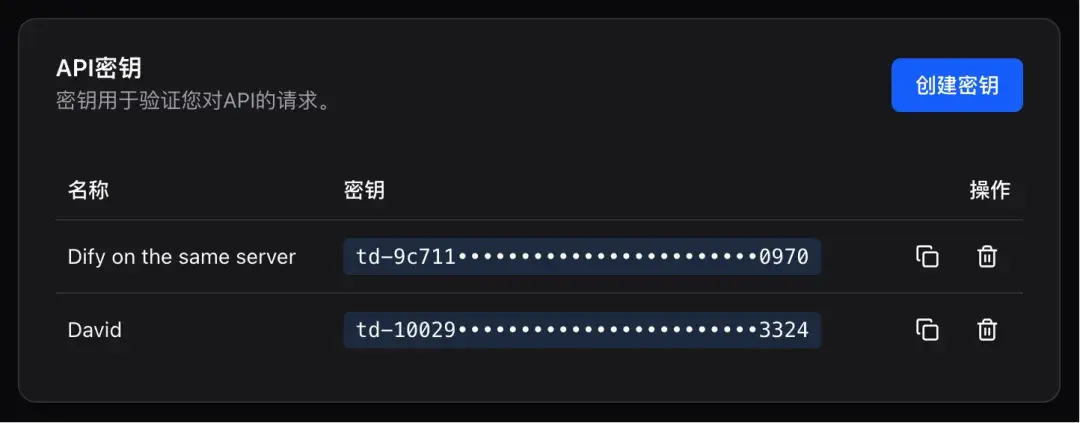 3. 在用户账号页面,创建API密钥: – API Key:td-xxxxxxxx