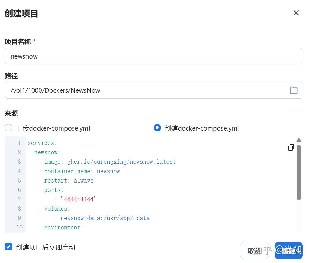 下面通过 NAS 的 Docker Compose 进行部署,同时给出了命令部署 Docker 镜像,可以根据自己实际需求进行部署。更多 部署指南 请参考官方说明。