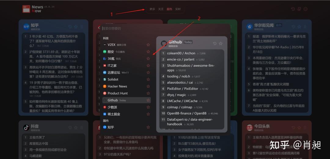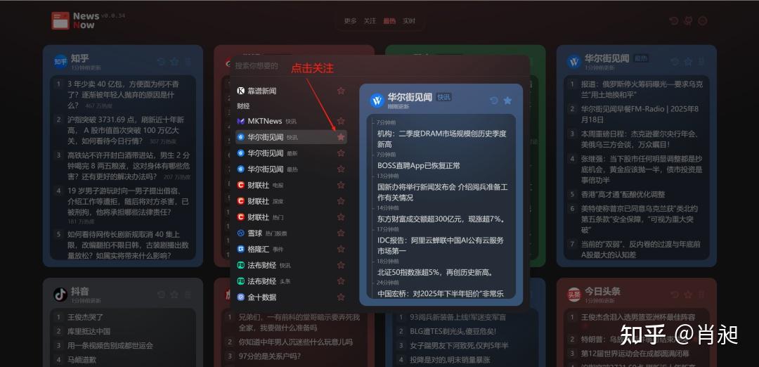 NewsNow 是一个聚合新闻内容的在线平台,它将包括微博、知乎、抖音、GitHub、华尔街、Hacker News 等不同来源的热点新闻报道集中在一起,还能让我们根据自己的需求选择关注的新闻源,从而让我们获取资讯的方式更加快捷和高效。