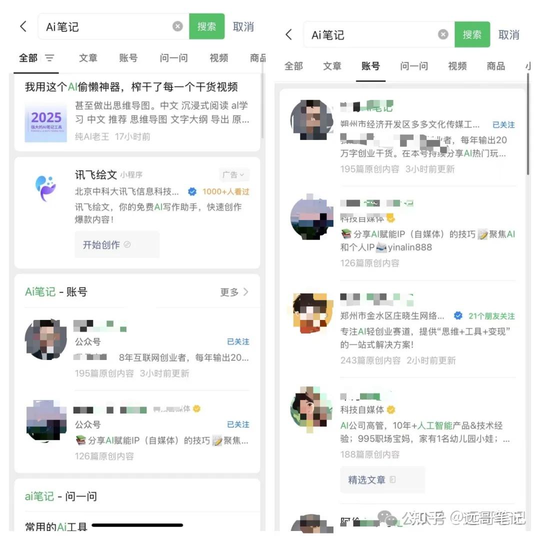引流方法有很多种,这里以公众号为例,微信搜索:AI笔记,就可以找到很多对标账号了。
