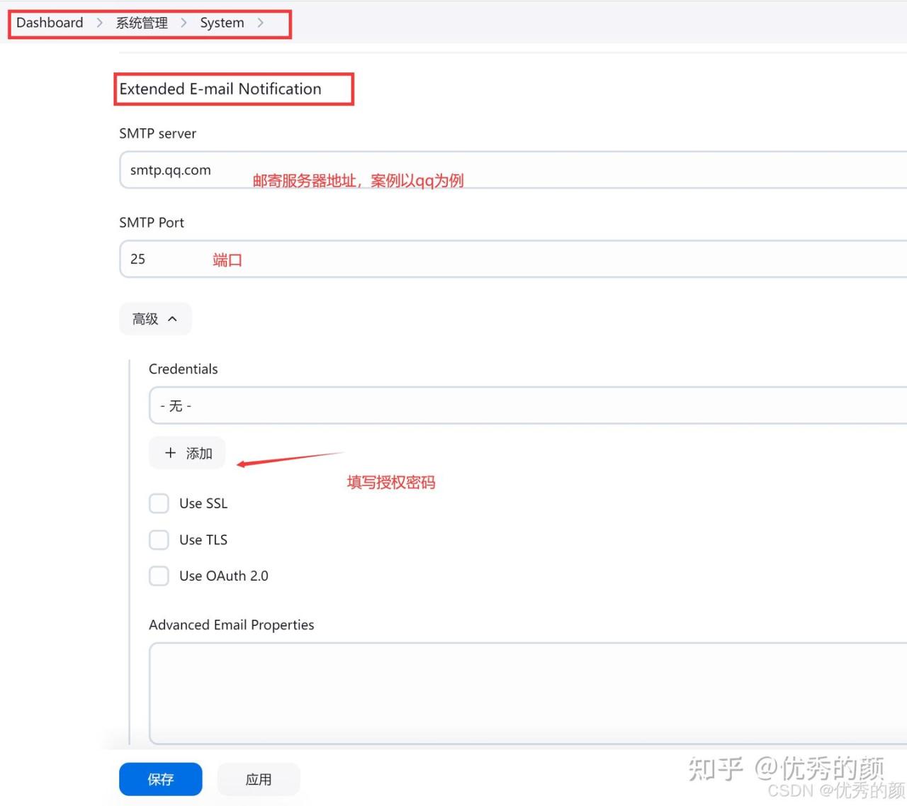 在这里的添加,进行添加邮寄的服务器,用户名和授权密码。添加完,可在Credentials,显示该配置的人。