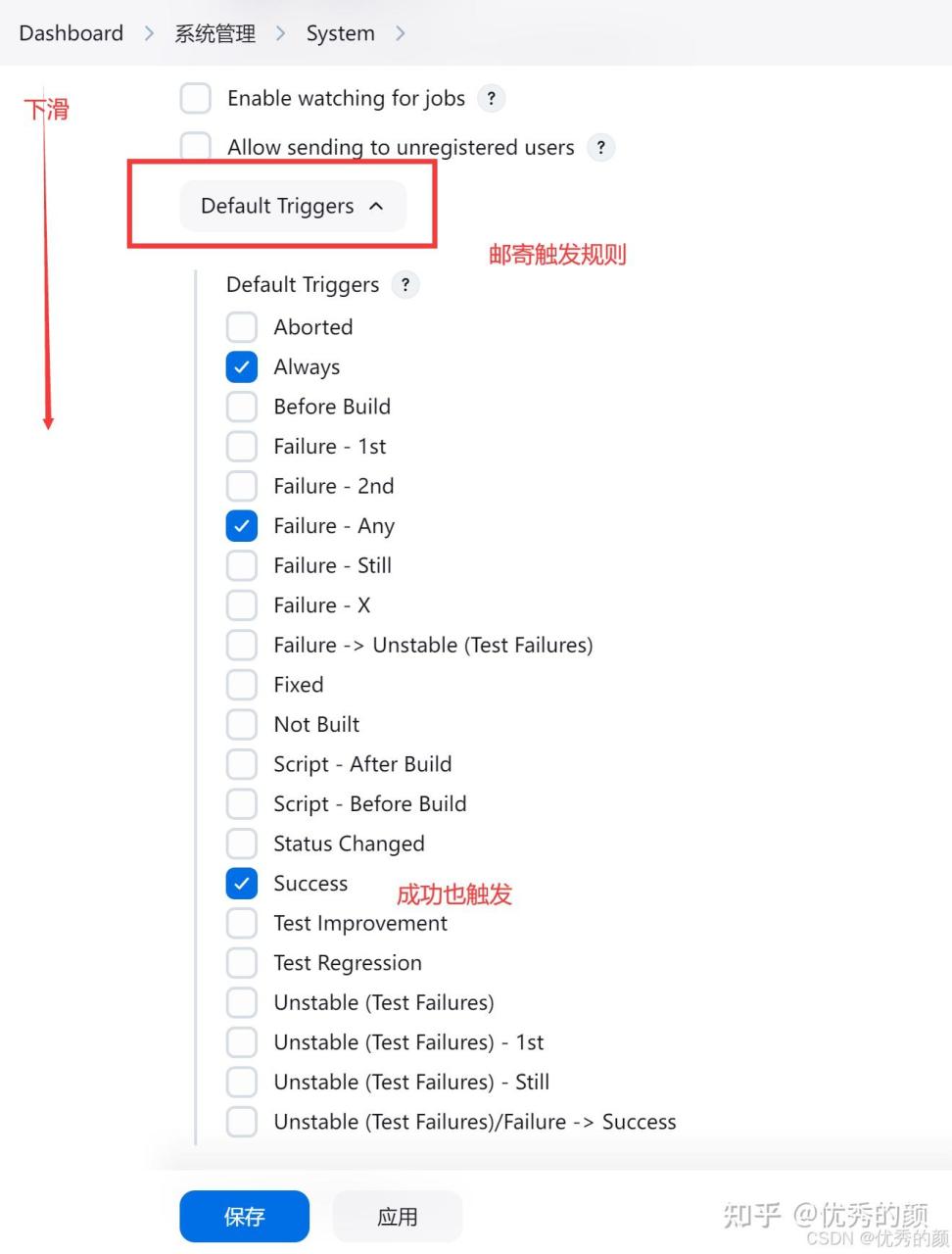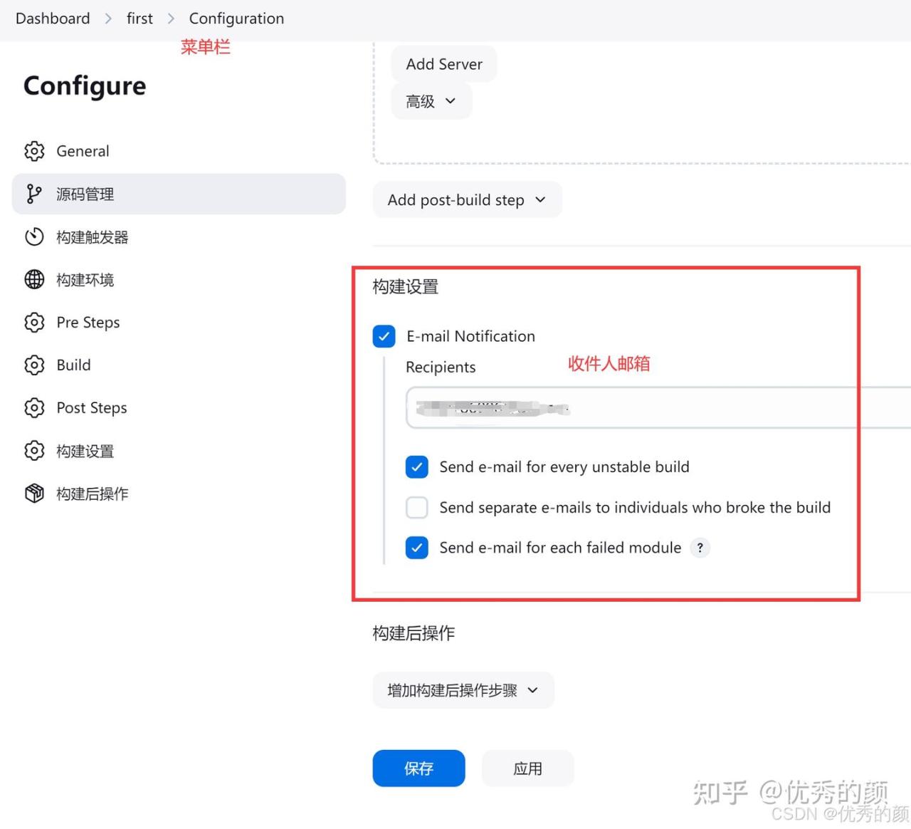 下面进行任务栏,配置收件人邮箱,构件失败会发送邮寄通知。