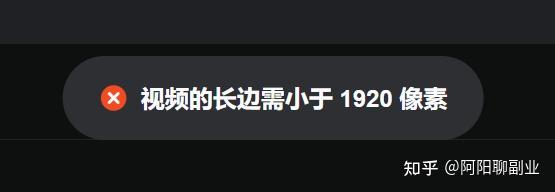 如果不符合平台规则,会提示不能上传的原因(视频的长边需小于1920像素),如图: