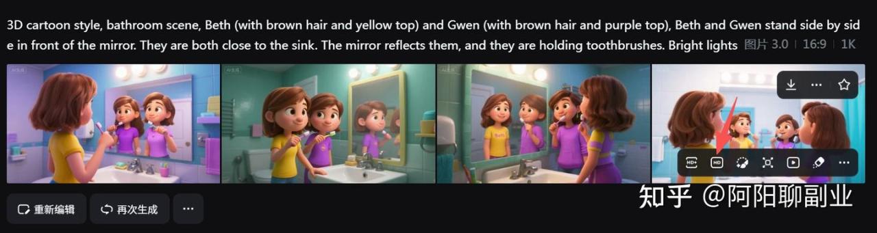 生成后觉得不够清晰,鼠标放在对应图片上,可以点击点“HD” 还能下高清图。如图:
