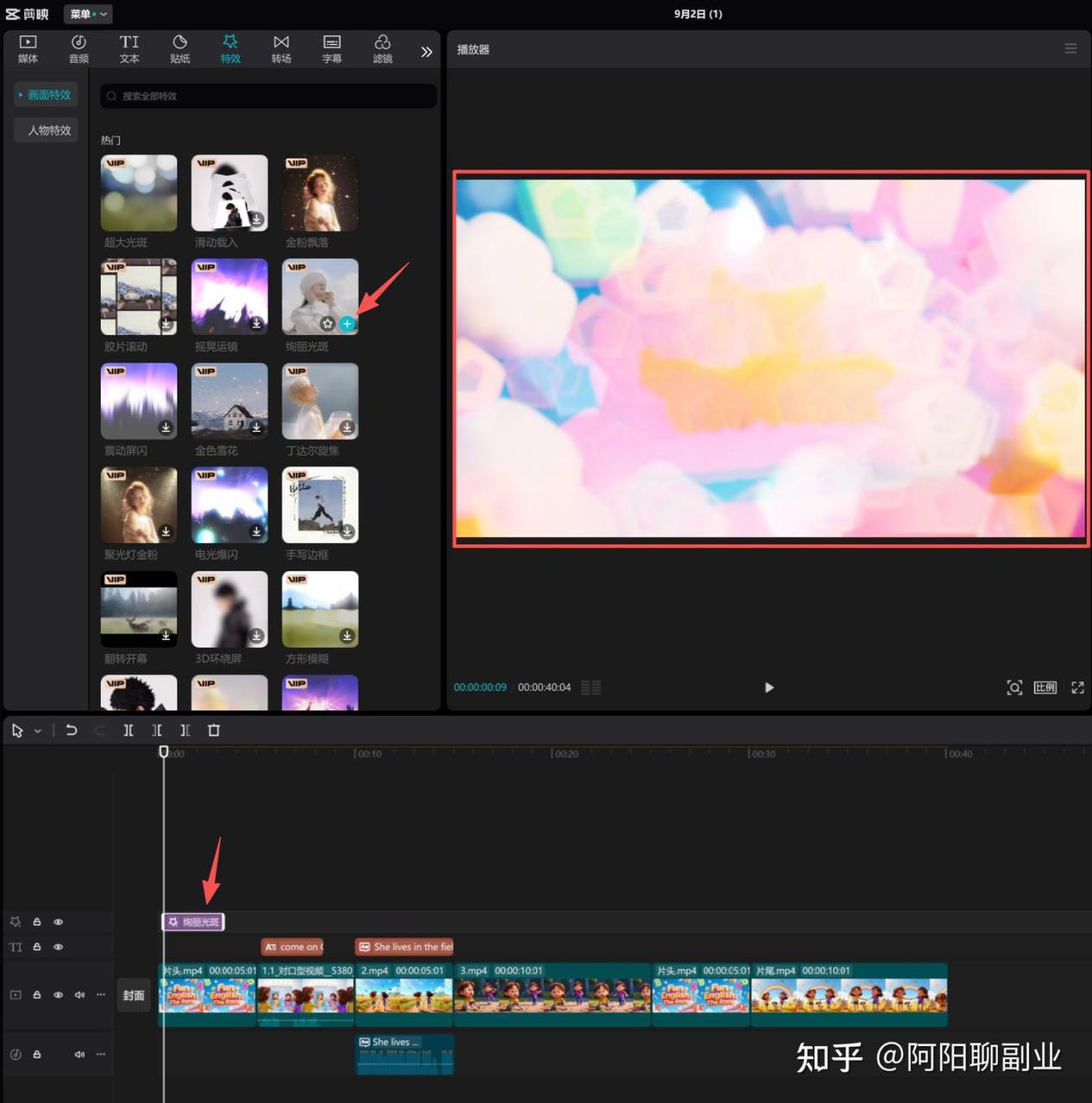 点击某特效的”+“号,下方轨道上就能看到添加的特效啦,如图: