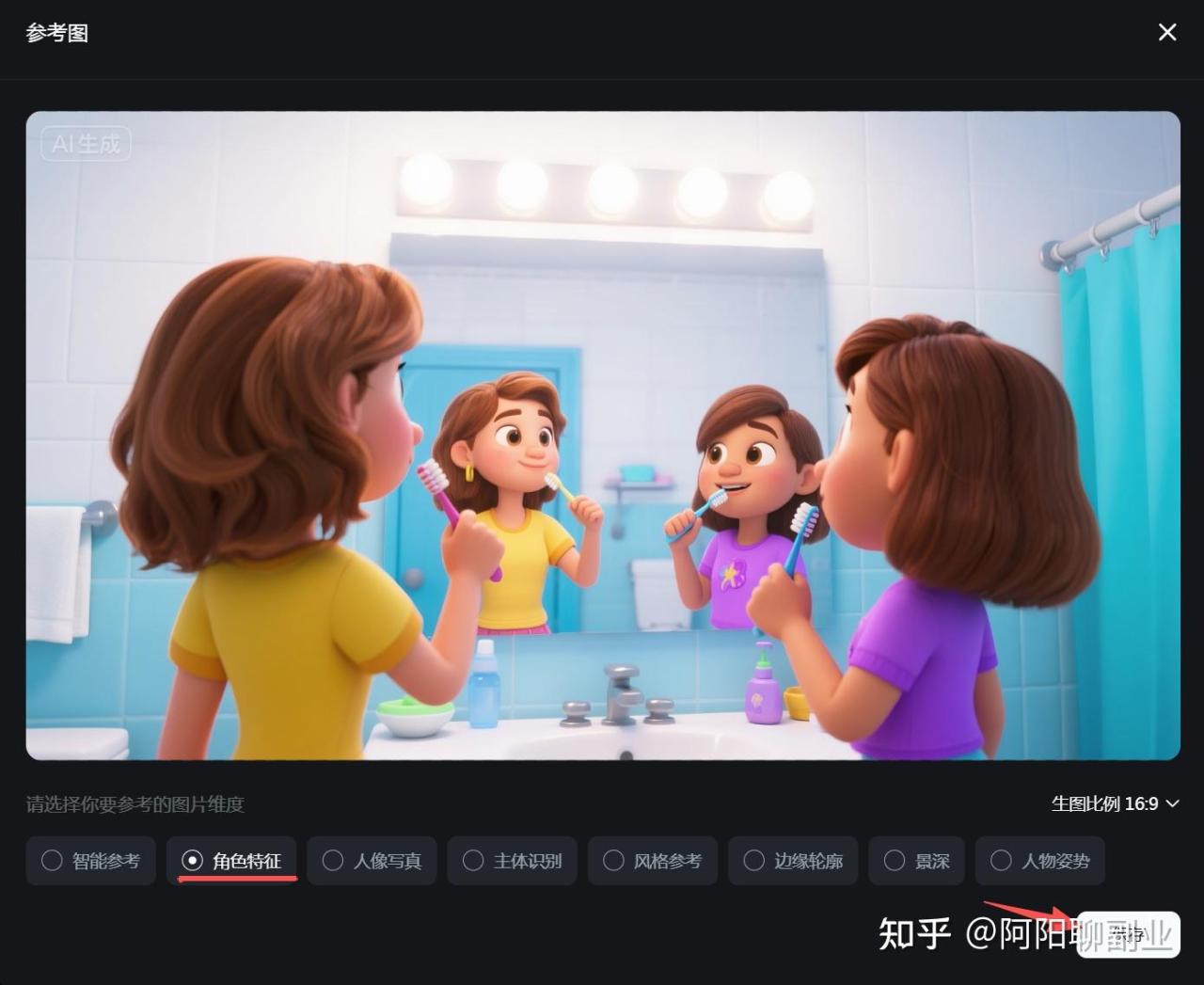 在弹出的窗口中,选择”角色特征“,AI 就会保持人物角色的形象统一,避免动画违和。点击”保存“,如图: