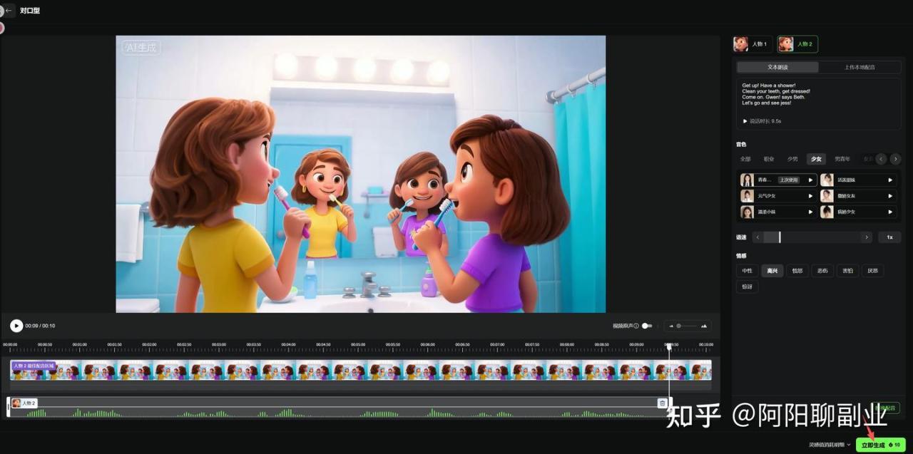 根据前面的讲解,再次上传最新的对口型视频素材后,点击“立即生成”,如图: