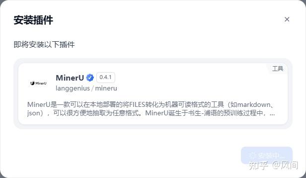,能够快速完成安装与启动,避免环境依赖问题。 - 与 Dify 的融合:在 Dify 中,MinerU 可以作为工具节点无缝集成,从而拓展了文档处理的应用场景。
