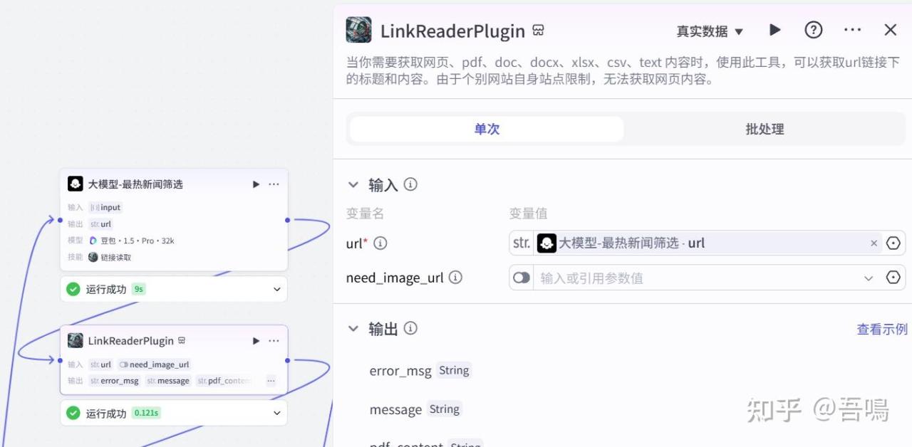 这个节点使用到了【链接读取】插件的【LinkReaderPlugin】工具,用于读取网络链接内容。