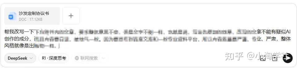之所以只选择做word文档,是因为这太适合通过AI改写去重了,把word文档作为附件的形式,上传到AI工具里,输入话术指令,生成符合我们要求的二创word文档。