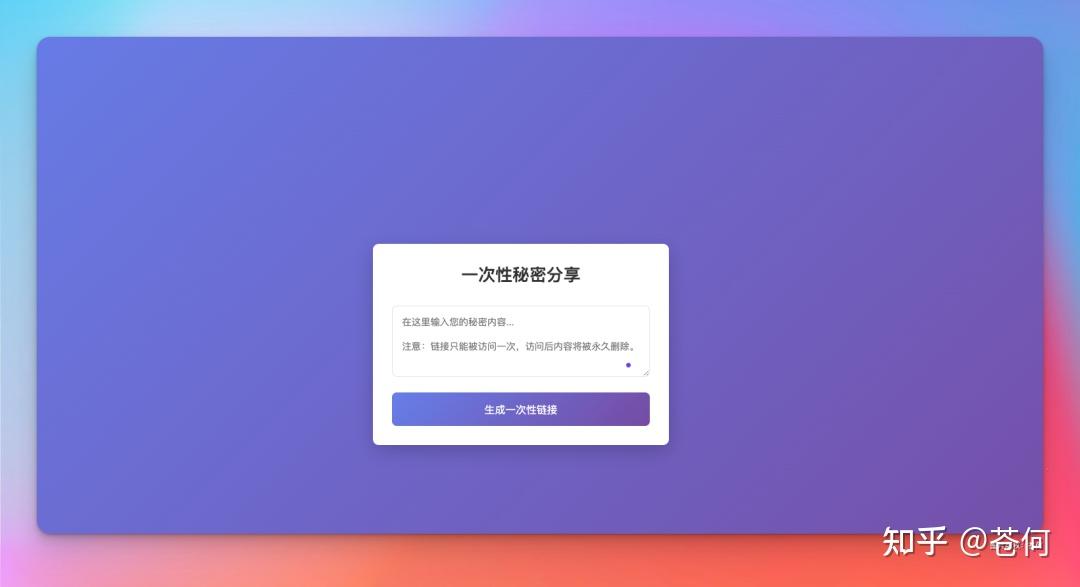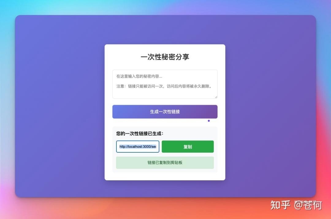 用户在文本框里输入任何秘密(比如一段临时密码、一句想说的话),点击“生成链接”。