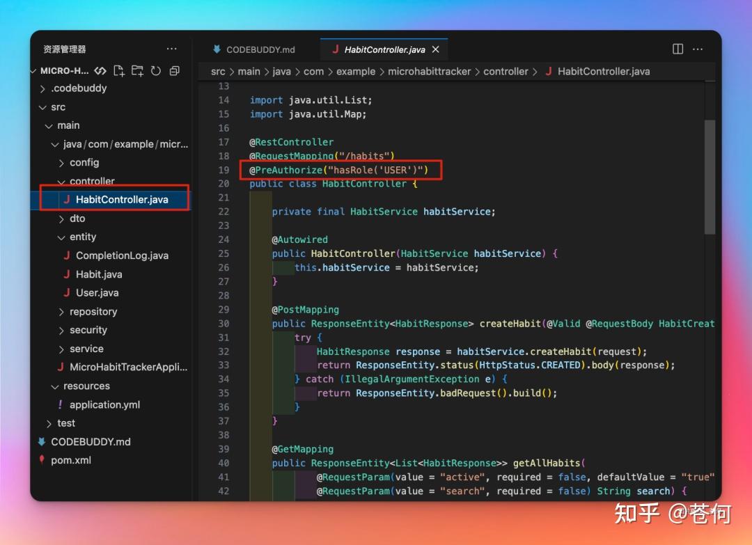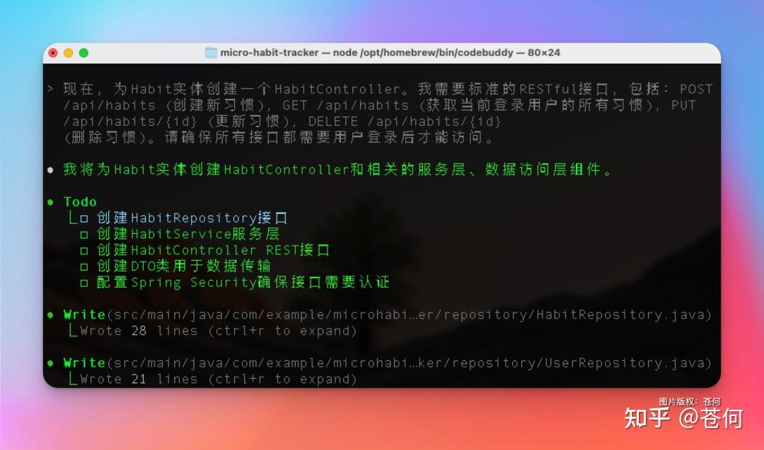 CodeBuddy Code 会生成一个完整的HabitController.java文件,包含所有CRUD方法的框架。