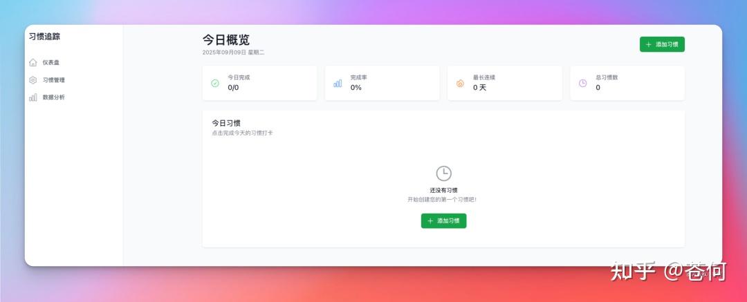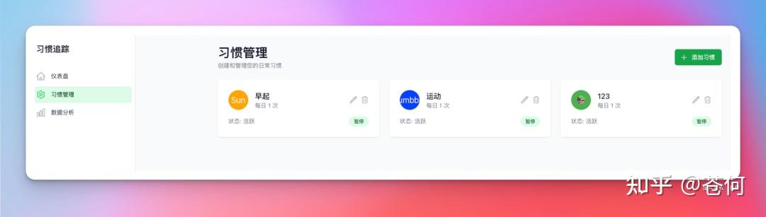读取 (Read): 在主仪表盘上,用户能看到自己创建的所有习惯列表。