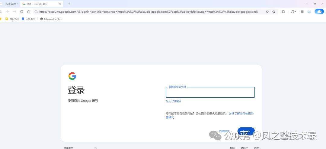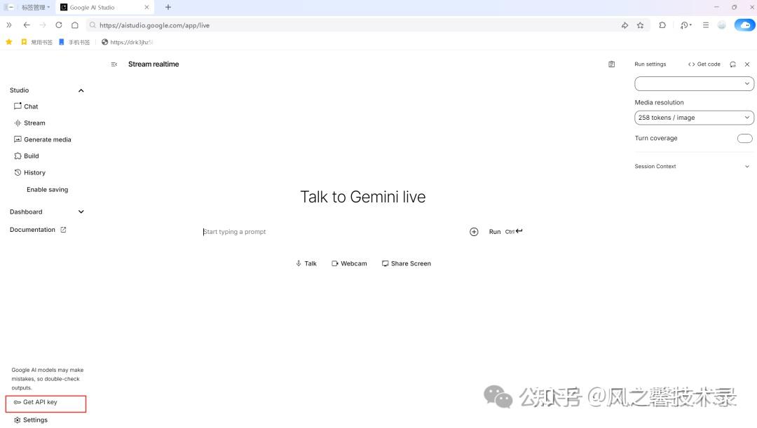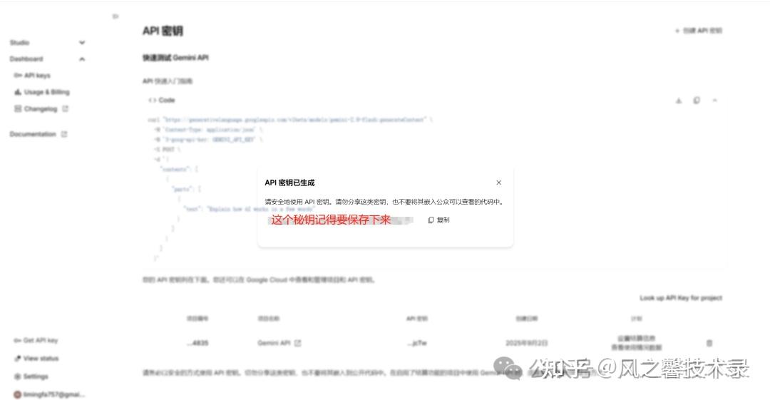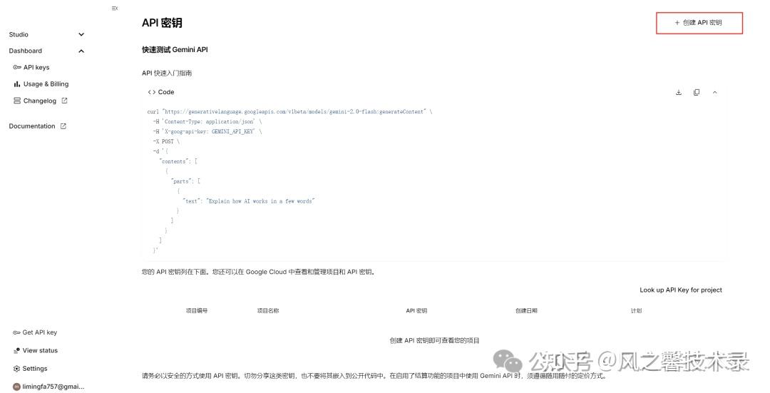 登录进入谷歌对话页面,点击get api key获取秘钥