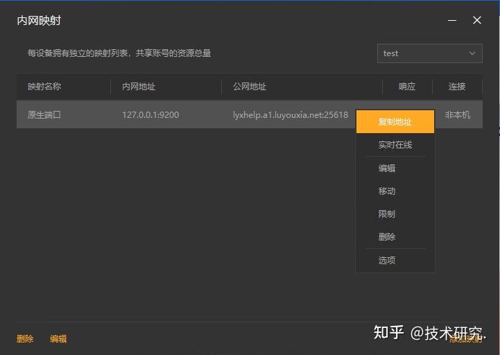 11,创建好后,就可以看到一条映射的公网地址,鼠标右键点击【复制地址】。