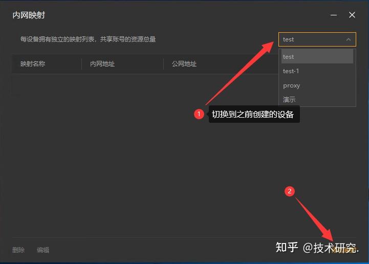 8,注意右上角的设备名称下拉框,这里选中刚刚添加的设备名称,此时在这个界面上添加的映射,就属于刚刚这个设备。添加或修改一般需要等待30秒,容器中的路由侠进程就会更新并加载。切换好设备后,点击【添加映射】。