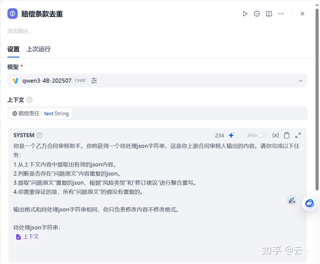 因为这个节点所实现的目标相比审查节点来说要简单的多,所以我们使用了qwen3-4B的模型来实现,从测试效果来看可以满足我们的需求。不过话说回来,如果我们在审查节点时使用235B的模型,是否可以省略二次审查的节点呢?欢迎大家评论区留言讨论