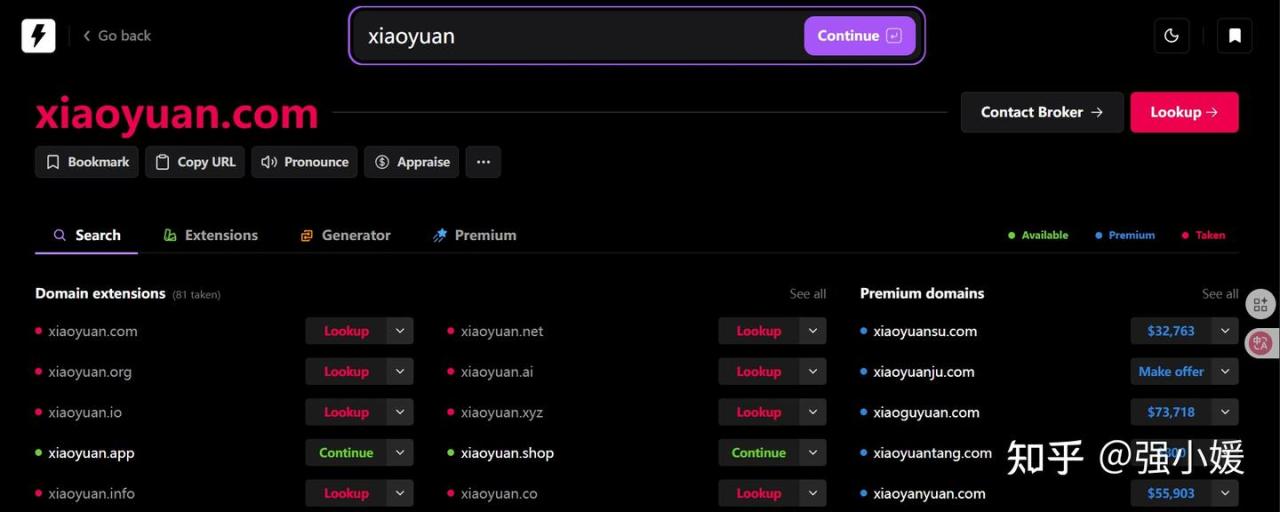 - 参考溢价域名:部分已经被注册的“好名字”,它会显示在 Premium 区域,标上高价或者让你出价。