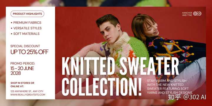 简评:不可用。翻译内容完整无误,将“UP TO 25% OFF”翻译为“7.5 折”,适配中文语系习惯,可读性强。但排版存在明显问题,如左下角的密集信息,没能美观地排版分行;主标题针织衫毛衣附近的画面有明显白色残留痕迹;右上角角标LOGO重叠。