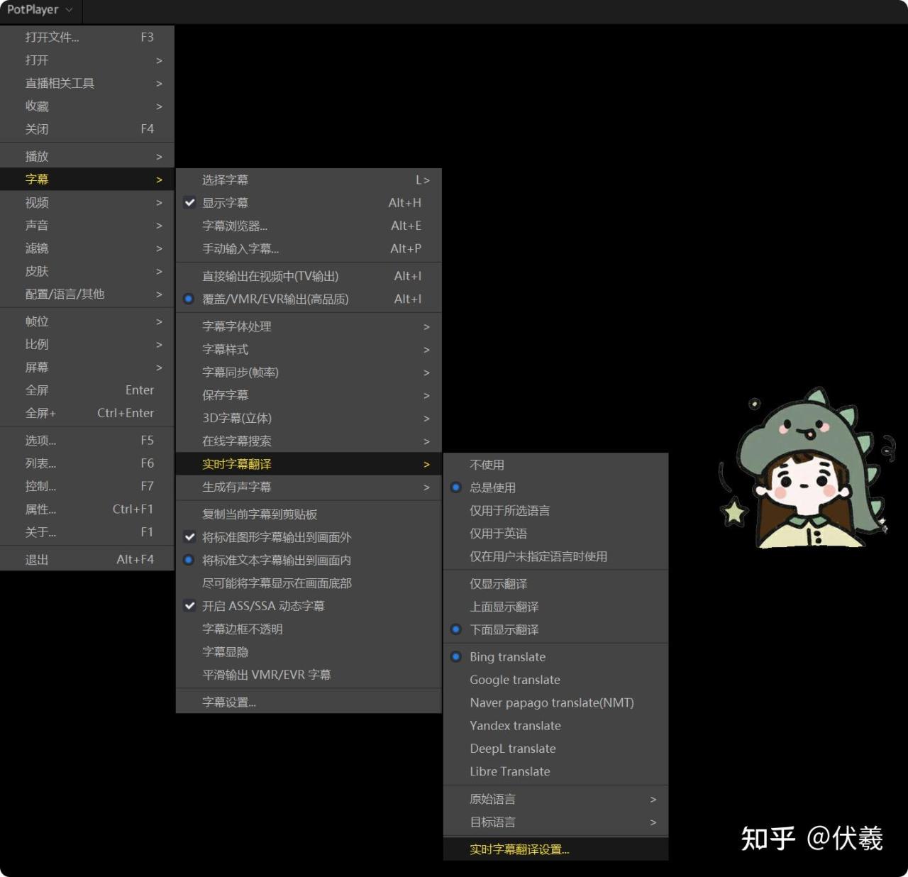 首先,启动 PotPlayer,按如图所示打开“生成有声字幕”面板(可以在设置中更改默认背景为自己头像哟):