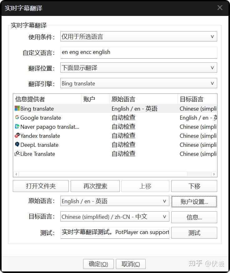 注意,默认都是国外的翻译平台 API,如果想用国内的,可以在 Github 上搜索 “PotPlayer Translate”,找到对应的项目,下载所需的 .as
