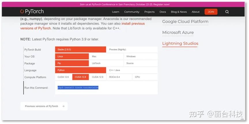 2.1 访问 Pytorch 官网,根据提示选择对应系统、CUDA 版本等下载安装即可。