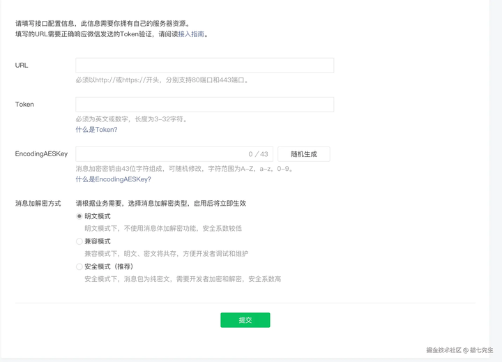 配置完成后,在公众号后台点击 “提交” 即可生效(注意:服务器地址必须使用 HTTPS 协议,因小程序安全域名仅支持 HTTPS)。
