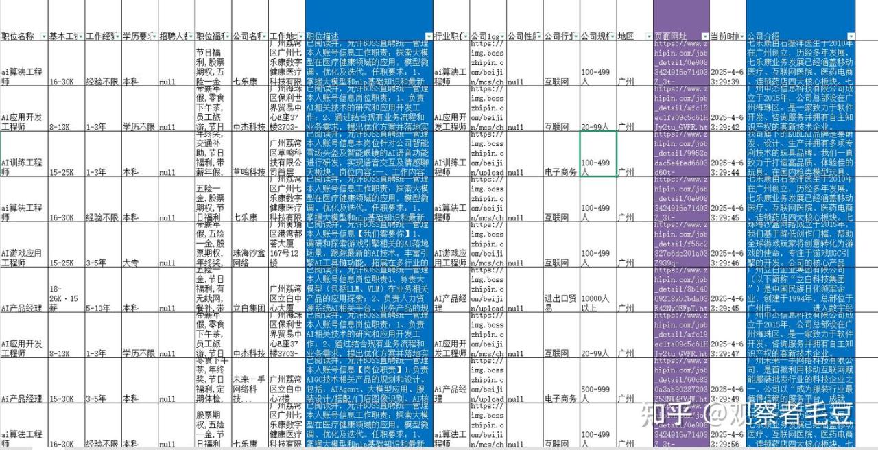 上图我是用的ai相关的职业抓取的,广州大概有2400个岗位。