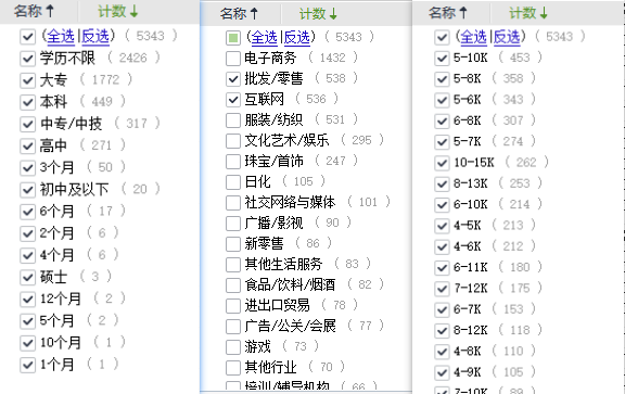 这样也可以回答一个困扰很多人的问题就是怎么样给自己职业做规划,比方说我当时抓取的是电商直播相关的,九成的跟直播相关都是抖音平台的,但也有一部分是快手百度或者淘宝直播,那如果你进了这类公司的,是不是就跟职业规划不太好了?
