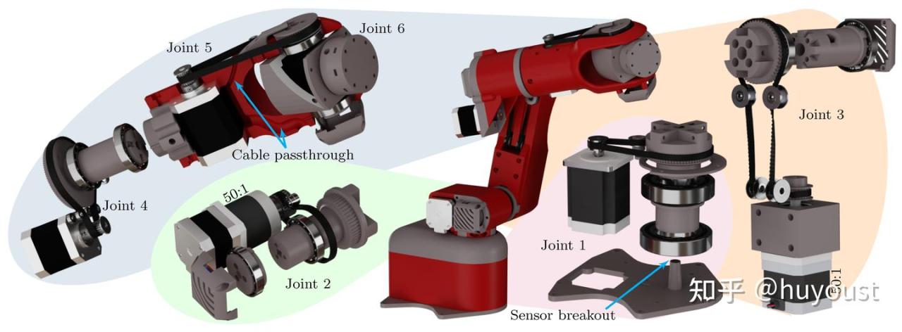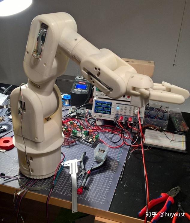 得益于关节驱动模组的集成,现在自己攒一个6轴机械臂还是比较简单的事情,高性能的用伺服模组,要求不高的用舵机。只要懂点机械设计与电子方面的知识,很容易攒出来。如果想做控制,就需要了解一点机器人学的知识。去GitHub搜一下,有很多开源的机械臂项目,但是质量也良莠不齐。以下是根据我之前所了解过的,同时简单搜了一下,整理的几个个人认为技术含量比较高,软硬件资料也比较可靠的开源机械臂项目: