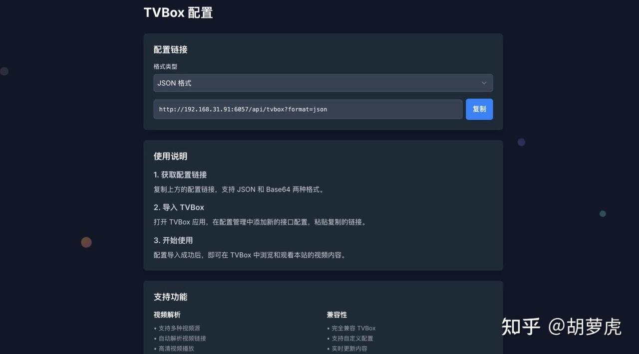 - 实时生成:根据当前网站配置实时生成最新的 TVBox 配置