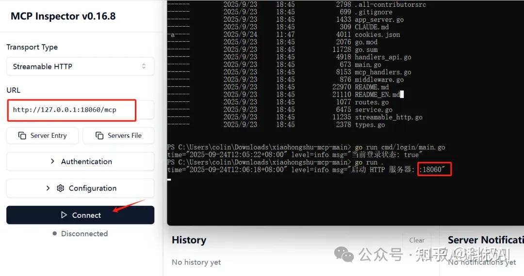 MCP服务器在本地以启动,端口号18060 (默认端口,后面会在MCP Inspector用到)