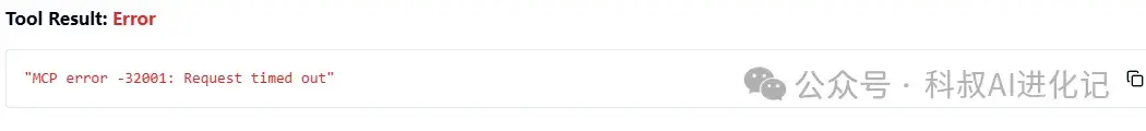 这里可能会遇到”MCP error -32001: Request timed out” 这是一个MCP请求超时的问题。