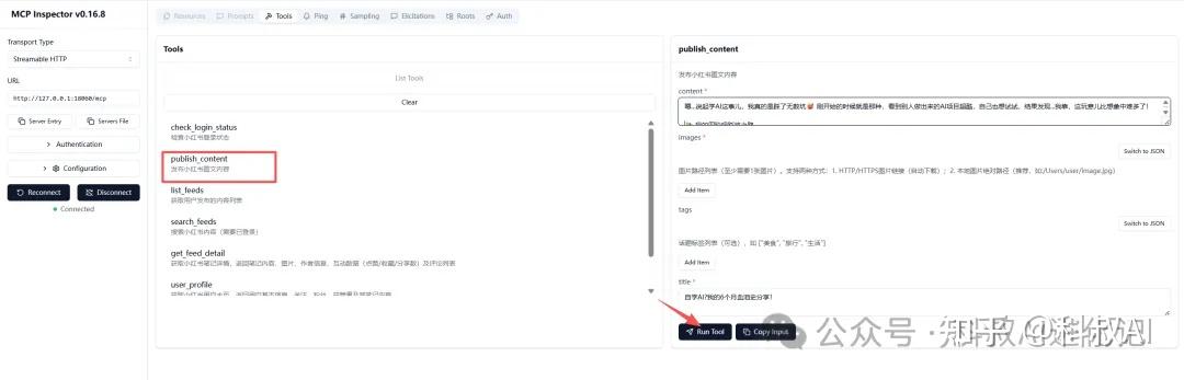 - publish_content – 发布图文内容到小红书(必需:title, content, images)