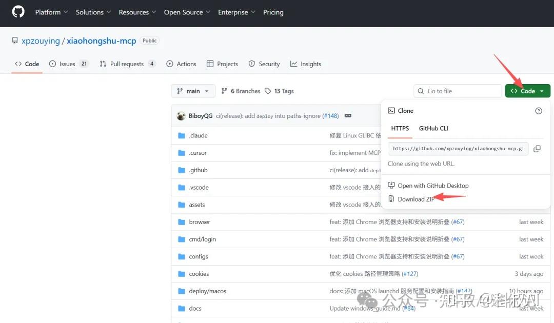从github下载源码https://github.com/xpzouying/xiaohongshu-mcp,如果无法下载可以关注公众号,加微信发你