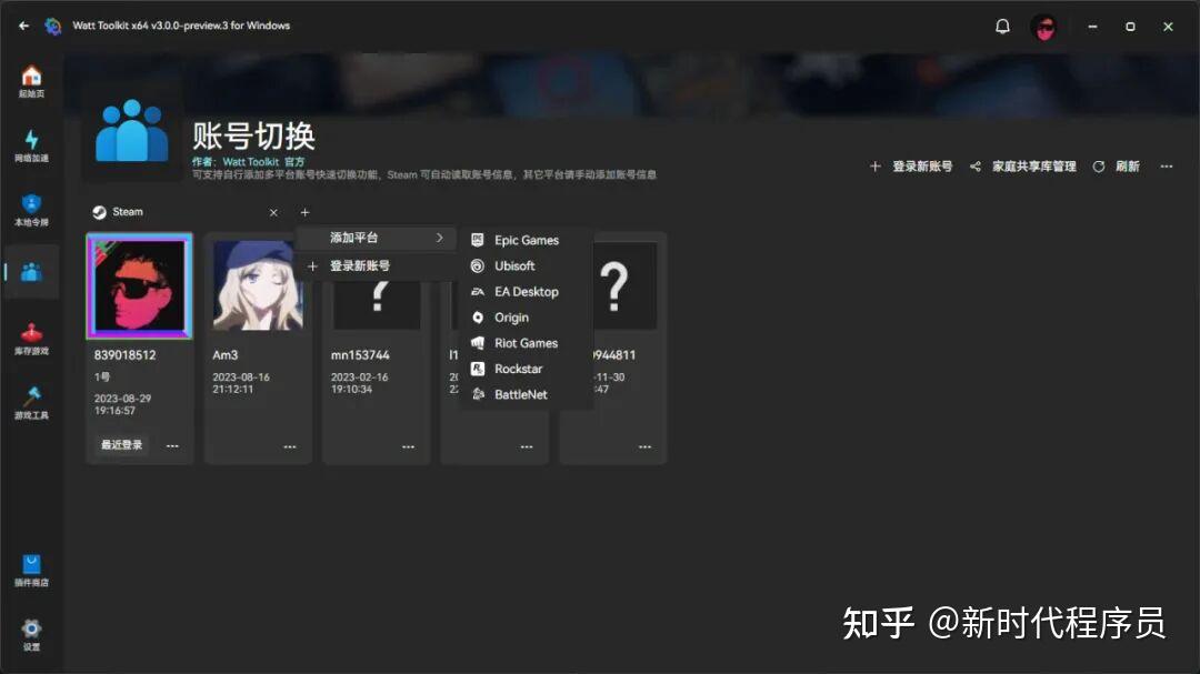 如果你在电脑上登录过多个 Steam、Epic 或 Uplay 等平台的账号,可以借助它快速切换,无需反复输入密码。它还能方便地管理 Steam 的家庭共享游戏库。