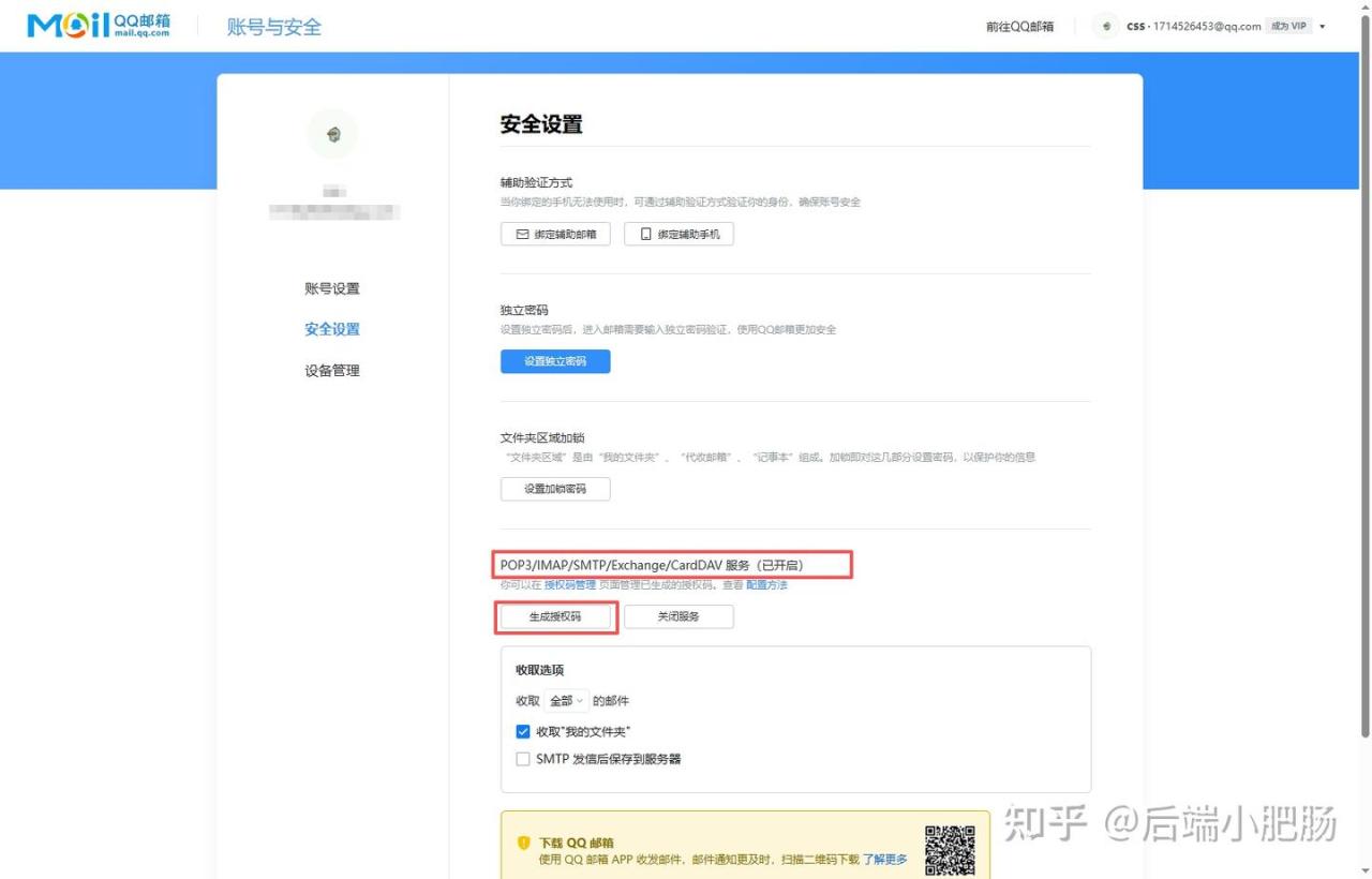 因为本篇文章涉及到邮件发送,故需要开启SMTP协议并获取授权码,步骤如下:
