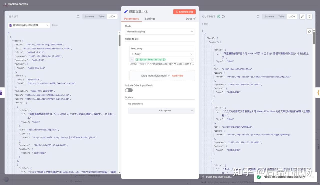 以上就是基于n8n将订阅文章消息发送到QQ邮箱的完整工作流,但是实际使用中还需要做一些改动,如将工作流转换为定时触发,以及部署到我们的服务器中实现每天运行给我们推送邮件,这些内容会放到以后的中高级课程。