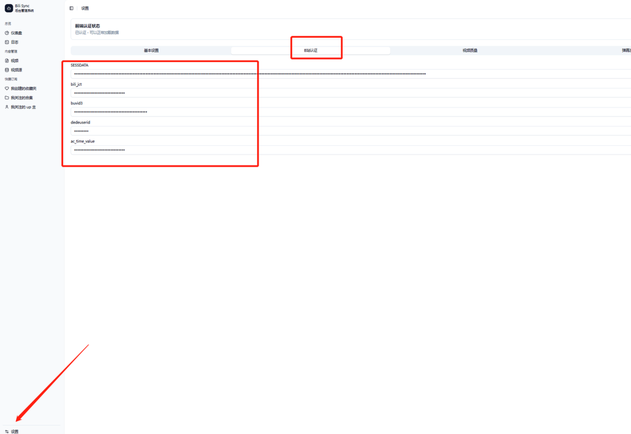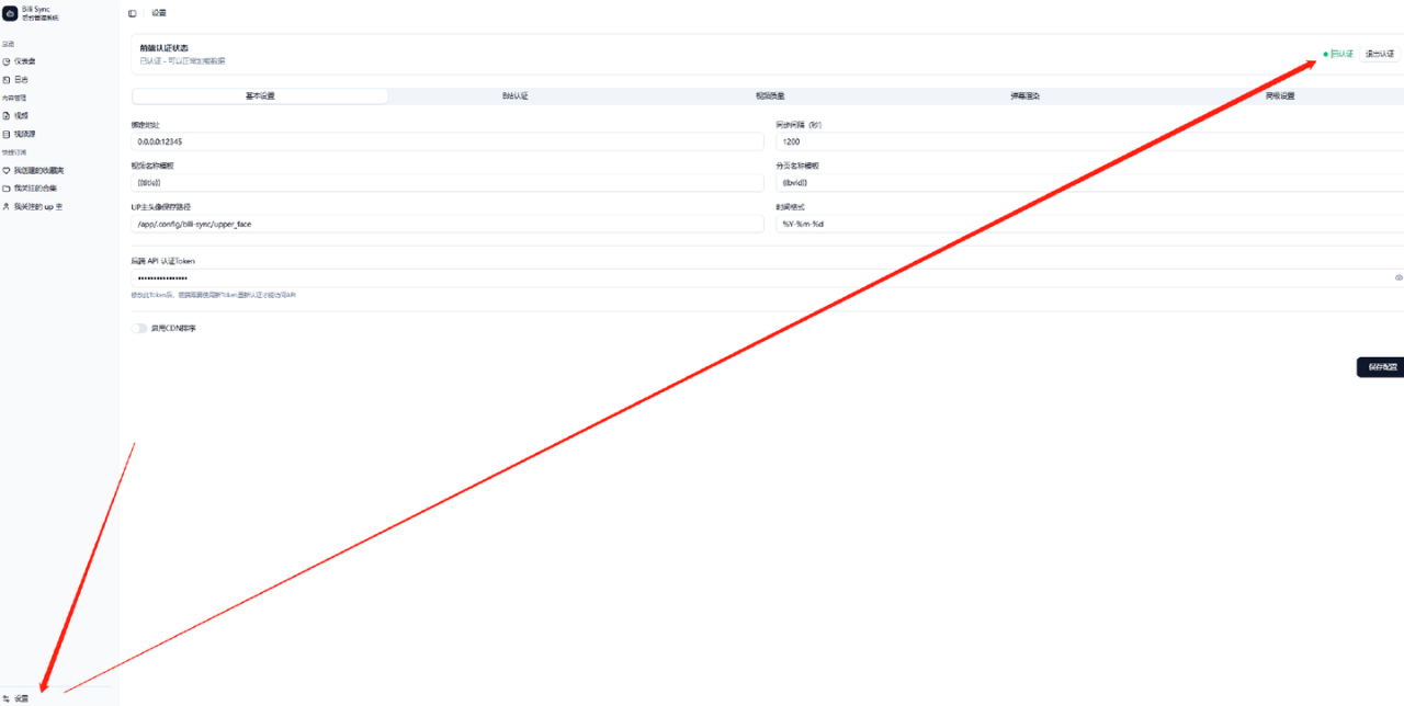 步骤4:在bili-sync右下角点击设置然后将 token码进行粘贴。