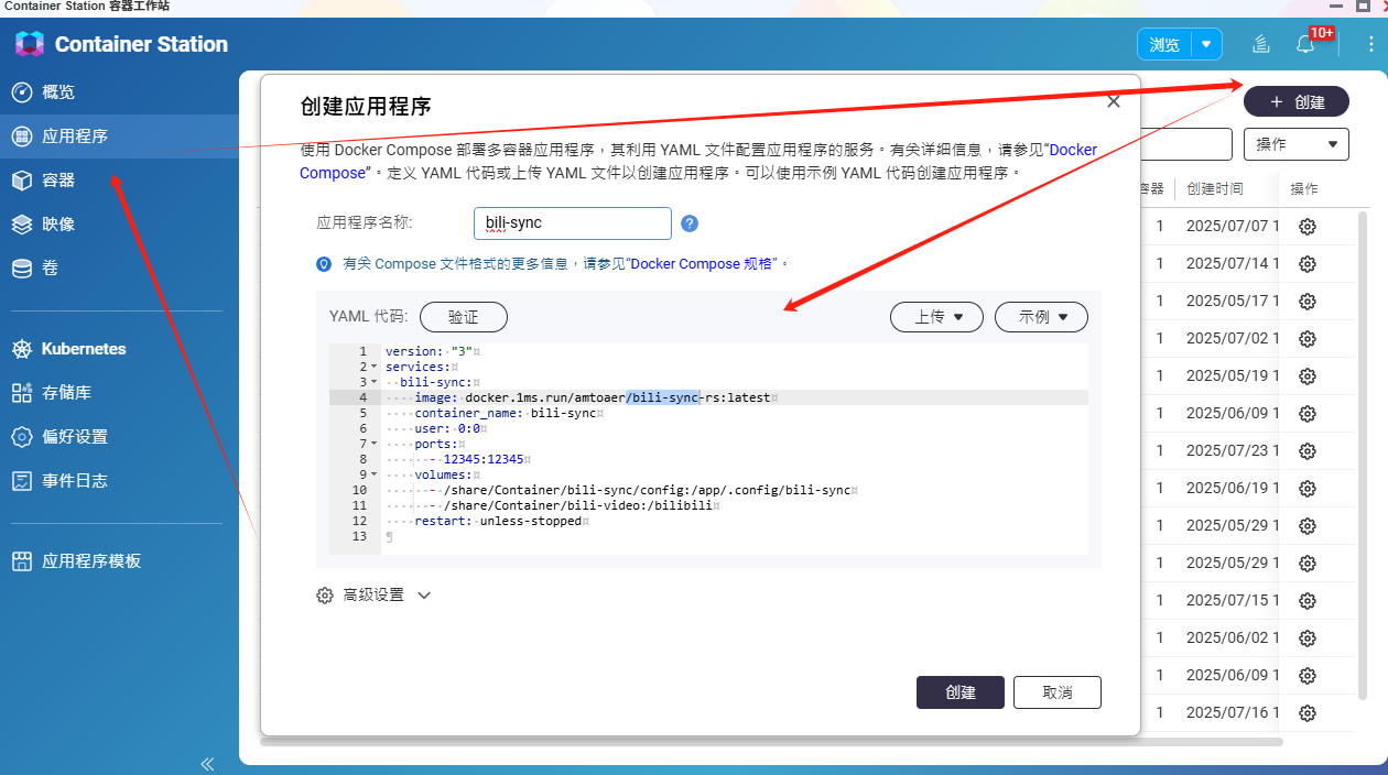 步骤1;打开ContainerStation 将下方代码进行复制粘贴。