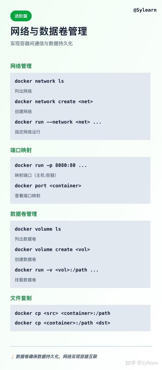 docker volume create+docker run -v vol:/data,再配合docker cp做冷备。 - 个人觉得,卷和网络是把 Docker 拉到企业级的关键。如果不规范,很容易出现“数据丢失或端口冲突”这类事故。