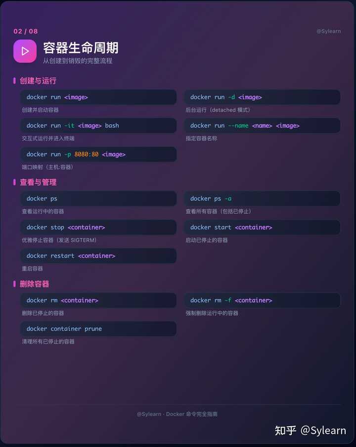 个人建议将 docker run 和 docker ps 搭配别名,提高排障效率;当容器异常退出时,docker logs <container> 是定位的第一步。