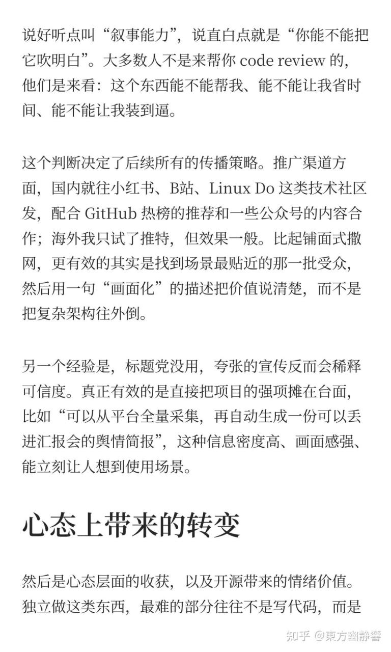 虽然他在各个平台的粉丝数不多,但他在小红书、B 站、Linux Do 等平台都进行了宣传,撰写了质量不错的宣传稿,录制了讲解视频。