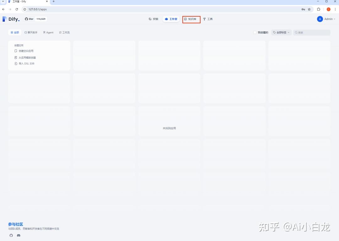 (1)登录你的 Dify 账户,进入「知识库」模块。