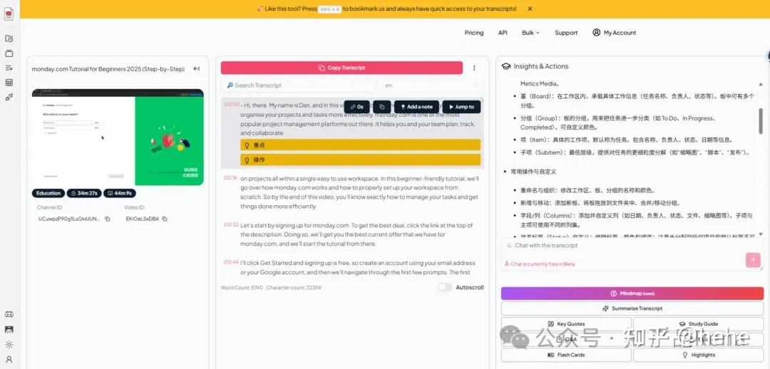- 批量抓取多个 YouTube 视频的字幕(http://YouTube-Transcript.io 的 Bulk 功能)。