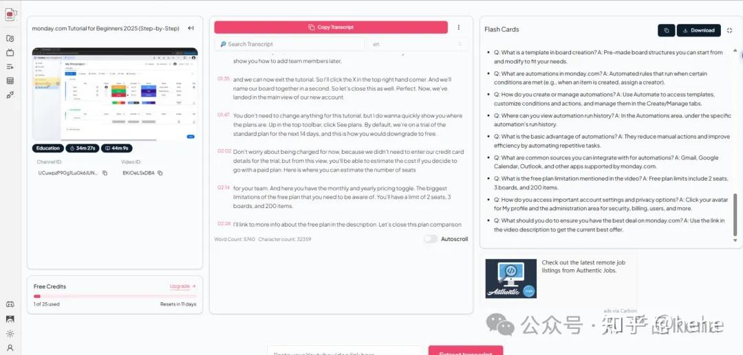 场景:你在 YouTube 发布了一个影片,或者你发现一个热门影片,想把里面的“口语讲稿”转成博客内容、文章摘要或者社交媒体帖子。步骤: