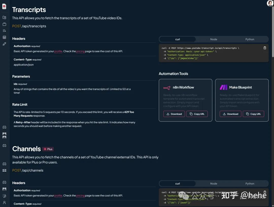 - 把自己做成待集成的API,已经在官网上重点跟大火的N8N工具等集成。满足了批量 / 自动化获取 YouTube 数据(如视频转录稿、频道信息)的需求,适合非技术用户或追求效率的开发者。