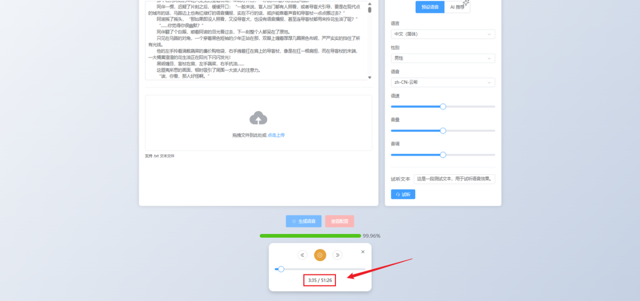 可以看到,听了才3分钟,生成的时长已经高达了51分钟,而且还是一本近700W字的小说!
