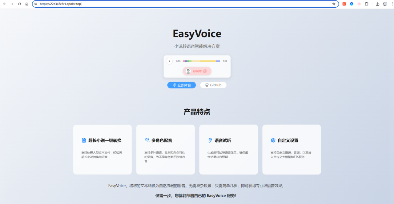 把小说瞬间变有声书:10 分钟搞定 easyVoice + cpolar 公网部署