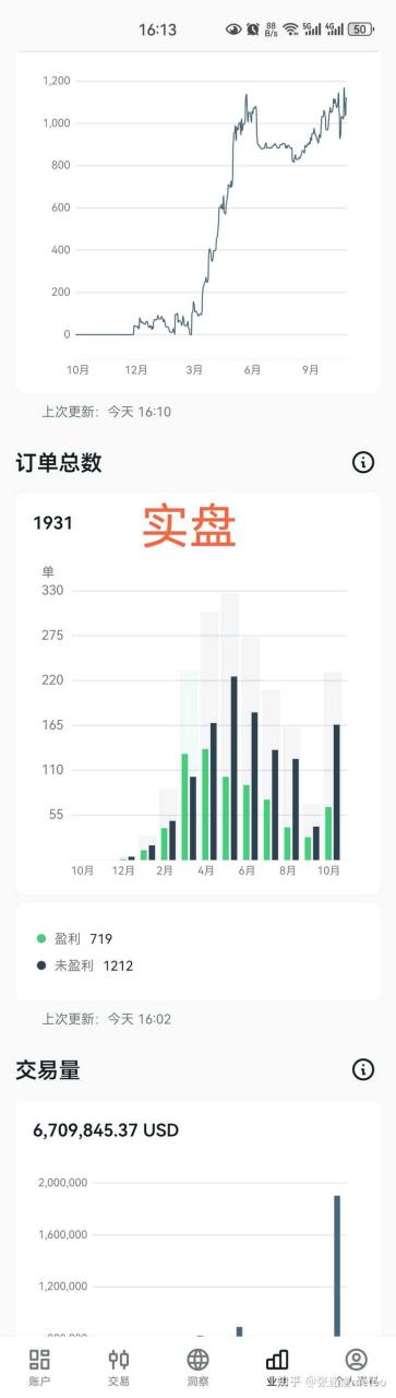 有,从23年就开始有自动化交易的想法,到25年3月用deepseek辅助实现想法,花了差不多两年,模拟测试一个月之后上实盘,截止10.27,实盘大概率3倍,最早模拟测试号8倍,实盘参数非常保守,想要爆仓除启动之后连续止损90次,下面是图片。